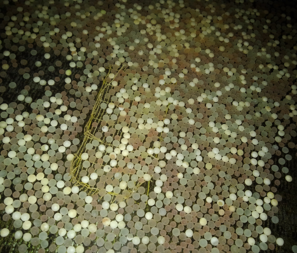 白い卵は死んでます 1/3ぐらい 死んでます 例年であればヤマメの卵はこんなには死なないんですが 、今年はやはり魚にストレスがかかったのか、 この中から本当に魚として 放流できるようになるのは何匹あるのかな