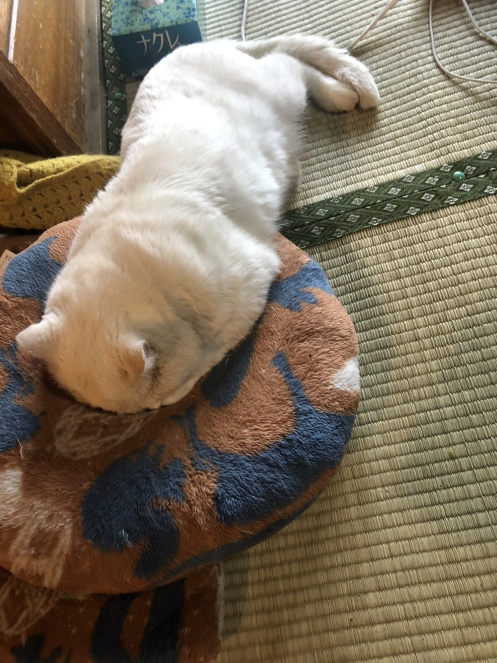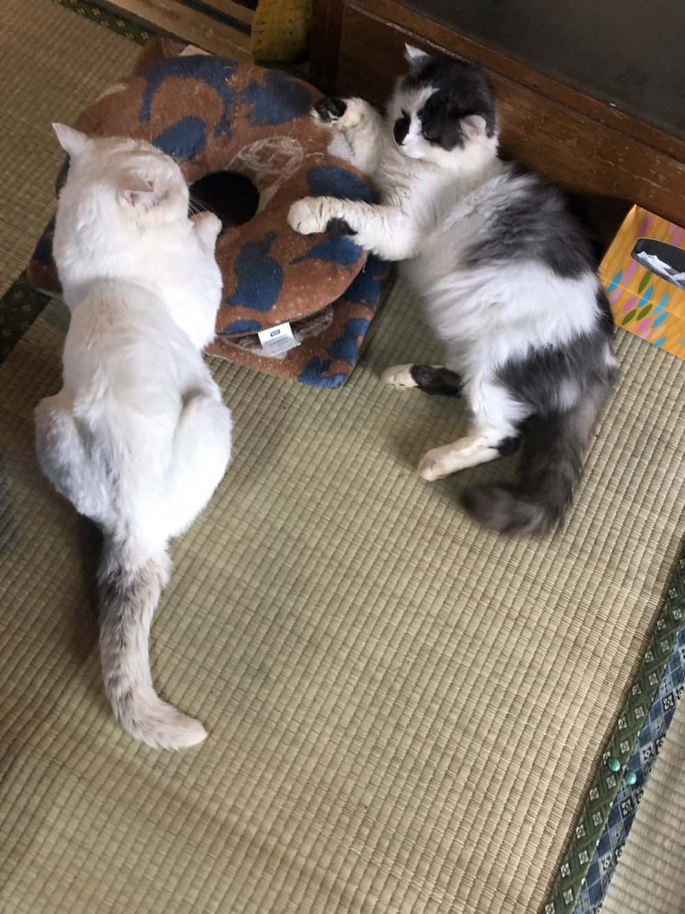 母の使っている ドーナツ クッション 猫たちの 取り合いです
