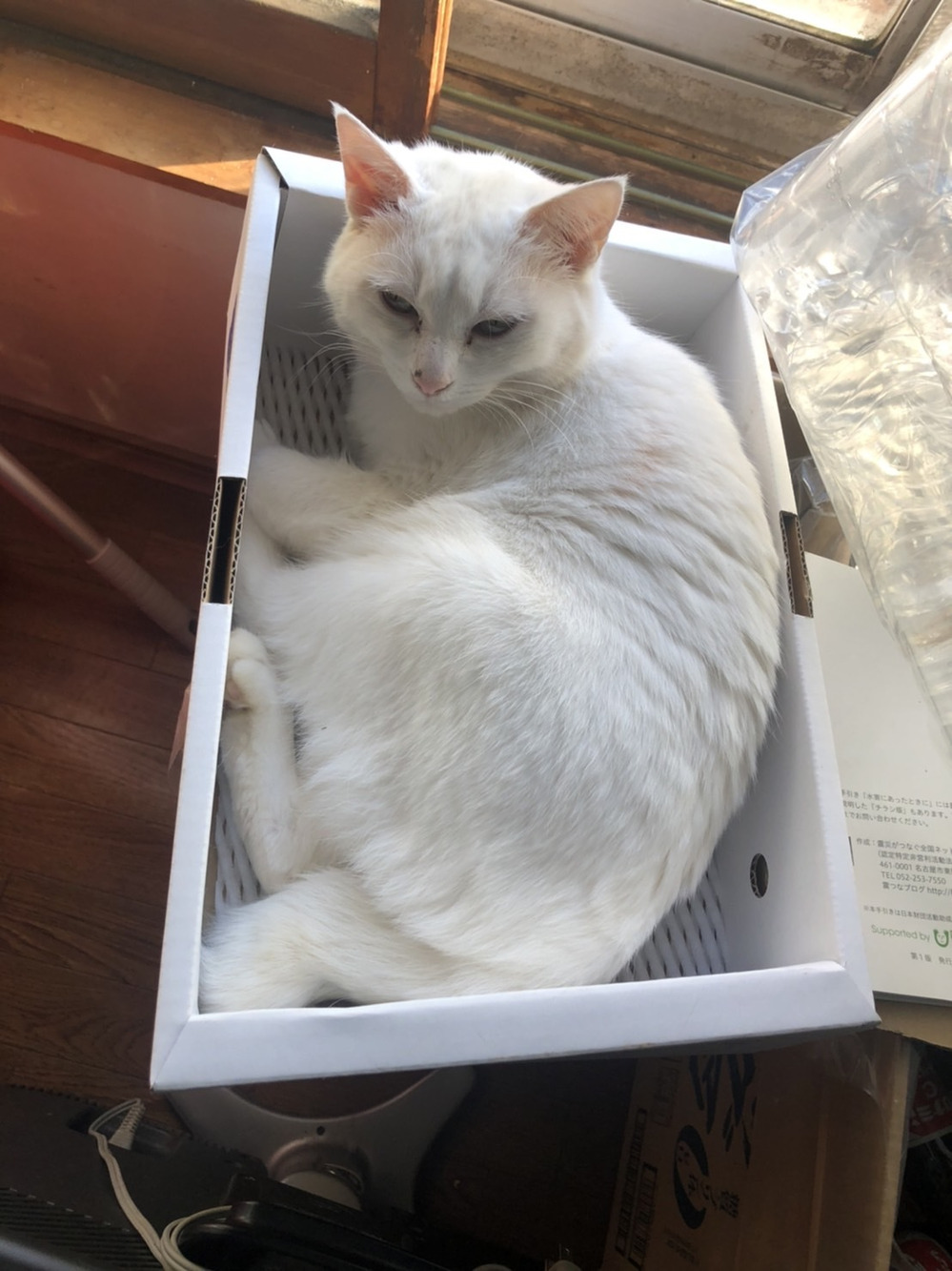 あら、可愛い(ノ≧▽≦)ノ箱や狭いところ好きですよね😻