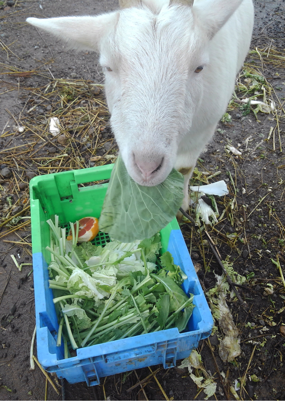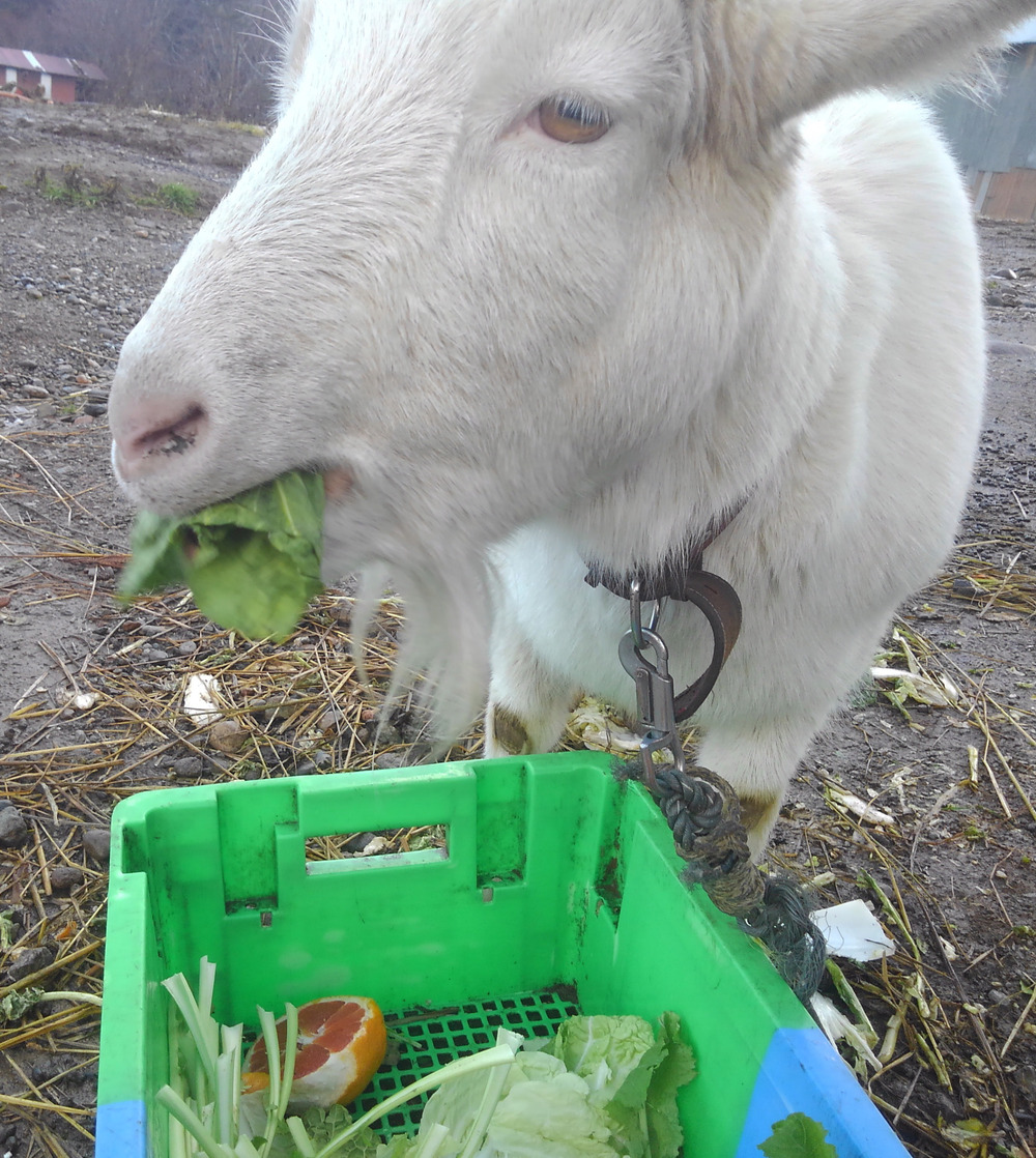 冬は 草は枯れるため めいちゃんの餌は 野菜のくずになります
