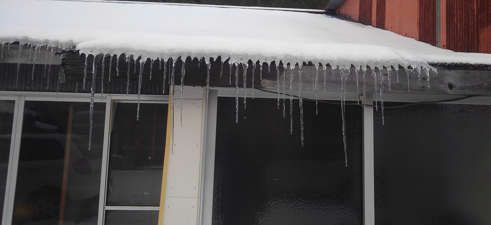 冬も本番つららが 出来始めてます 屋根のつららは 下に まっすぐ伸びてますが