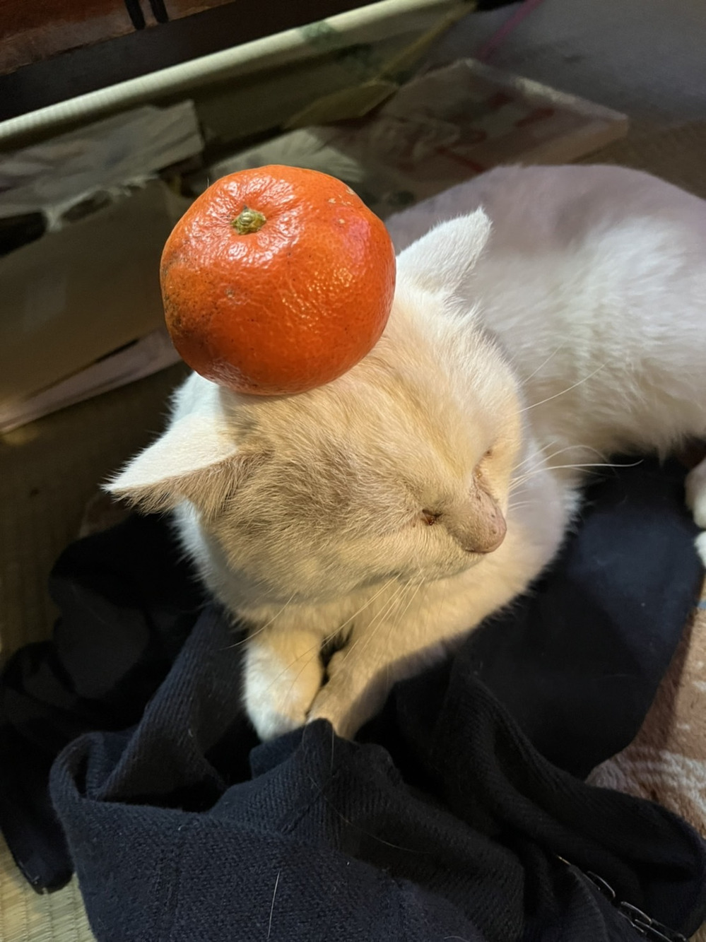 しろちゃん 大人しくみかん乗せてくれてるなんてお利口さんですね☺️