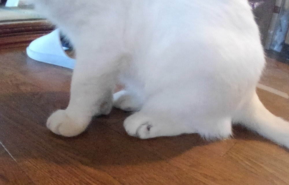 どら猫とやりあった、しろ 足に怪我をし、 血が出てました
