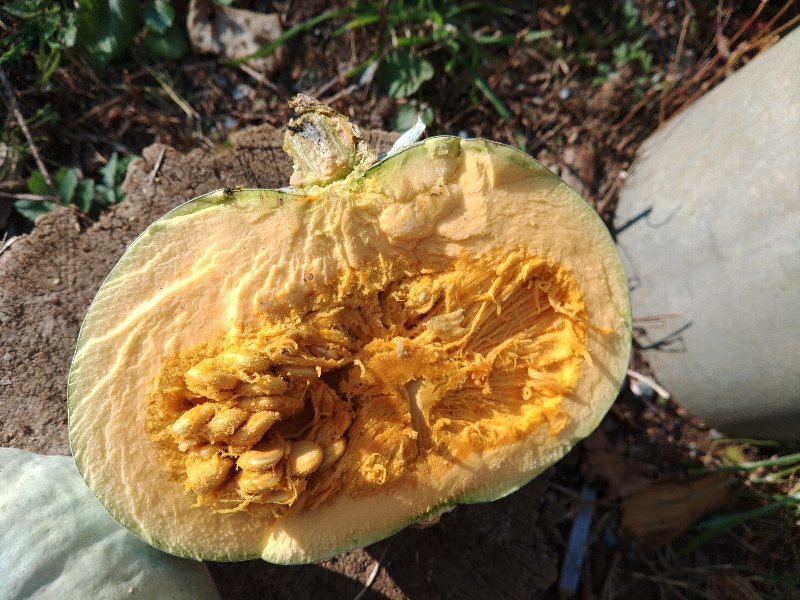 遅くなりました めいちゃんのところで収穫した、かぼちゃ 割ってみました まだ食べてませんが 今日食べてみますので 明日味の報告をいたします 楽しみに待っていてください
