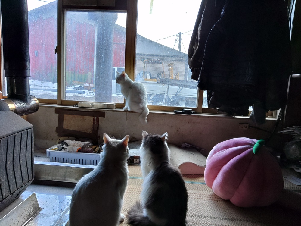 おはようございます。メイちゃん、自作、窓ですね。猫ちゃんたち、自由で(笑)可愛いですね。きっと一匹入ると取り合いになりそう〜 何より、健康1番で,あったかくして、しっかり休養とって,師走,頑張りましょう。いつもありがとうございます😊
