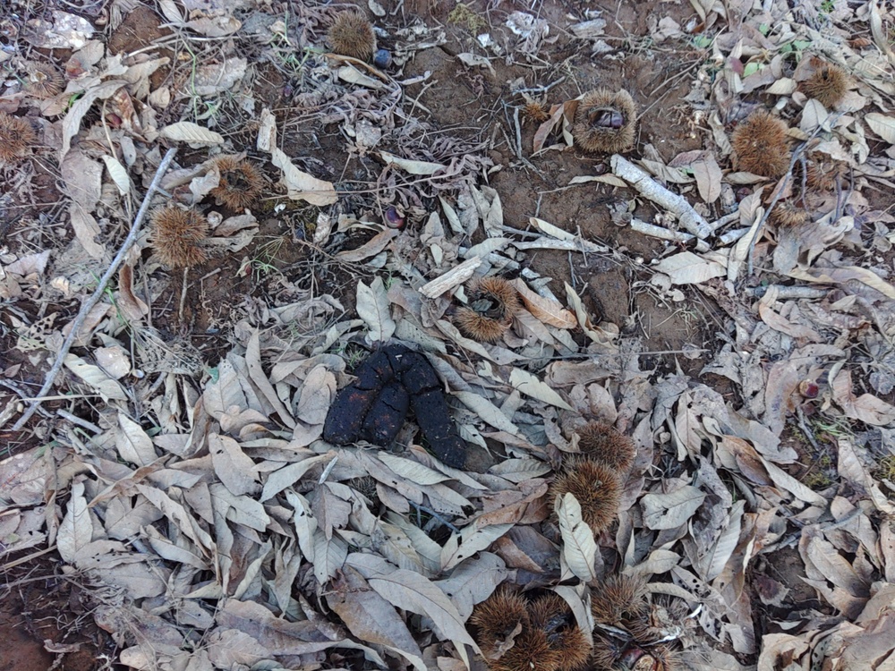栗畑に 野生動物の糞が落ちてます 熊かな 違うな 熊はもっと大きい糞だと思います
