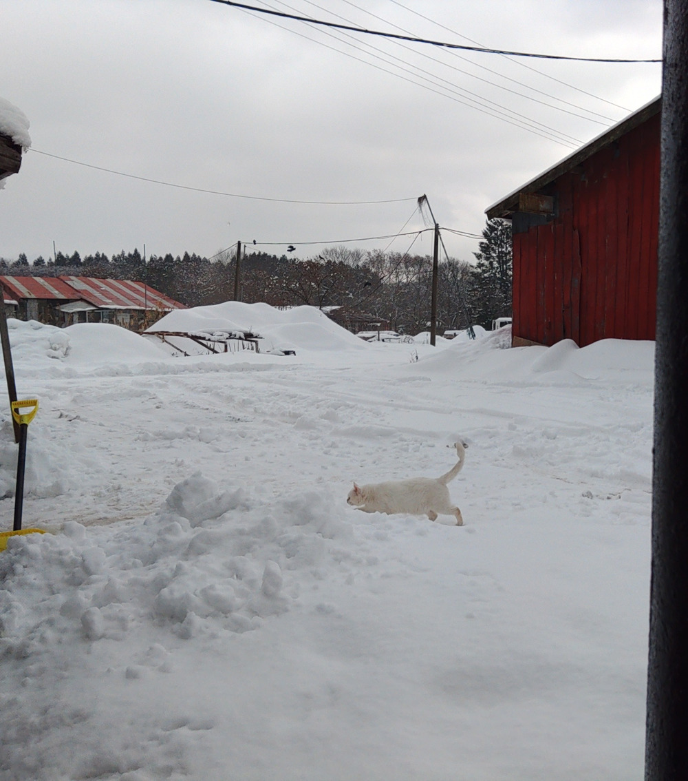 今年も相変わらずの 猫たち 薪ストーブ の周りから離れません そんな中 やはり外に出たい 猫のシロ、 寒いのか 5分もしないで戻ってきま 絶対肉球冷たいよね😁