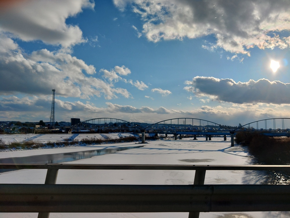 先日仕入れたいものがあり八戸まで少し足を伸ばして行ってきました 八戸は、都会に近いのか雪が少なく 雪のない道路 こんなに走りやすいんだなと、それでも川は 凍って 気温の低さは 変わらないようです。早く春が来ないかな😃