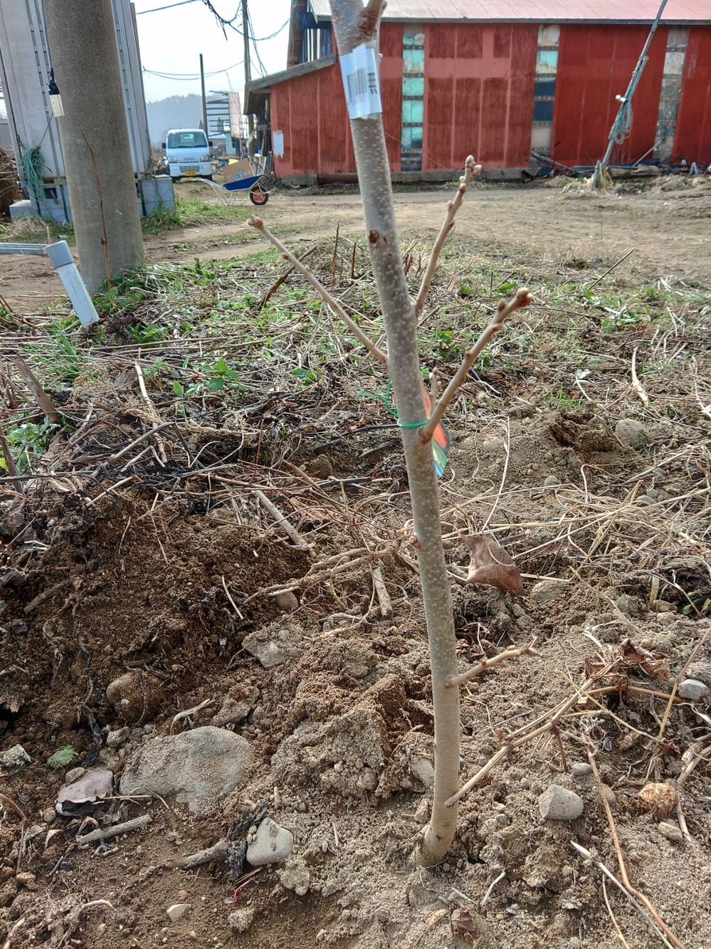 先日 柿の木を定植しました、 干し柿の方が皆さんに好評で、 もう少し数を増やしたいなと 思い、 2本植えましたが いつになったら 実がつくかな 10年ぐらい経たないと 数も増えないと思いますが、 それまで 山口養魚場 頑張らないとダメですね