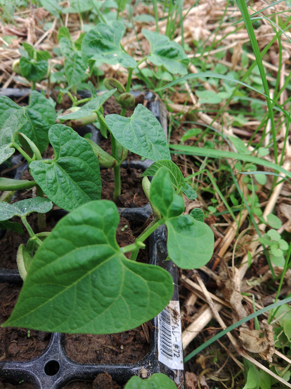 2週間前に 植えた インゲン 双葉が生え揃い そろそろ地植え かなと 初めての 一人農業 上手に できるか分かりませんが 頑張ります