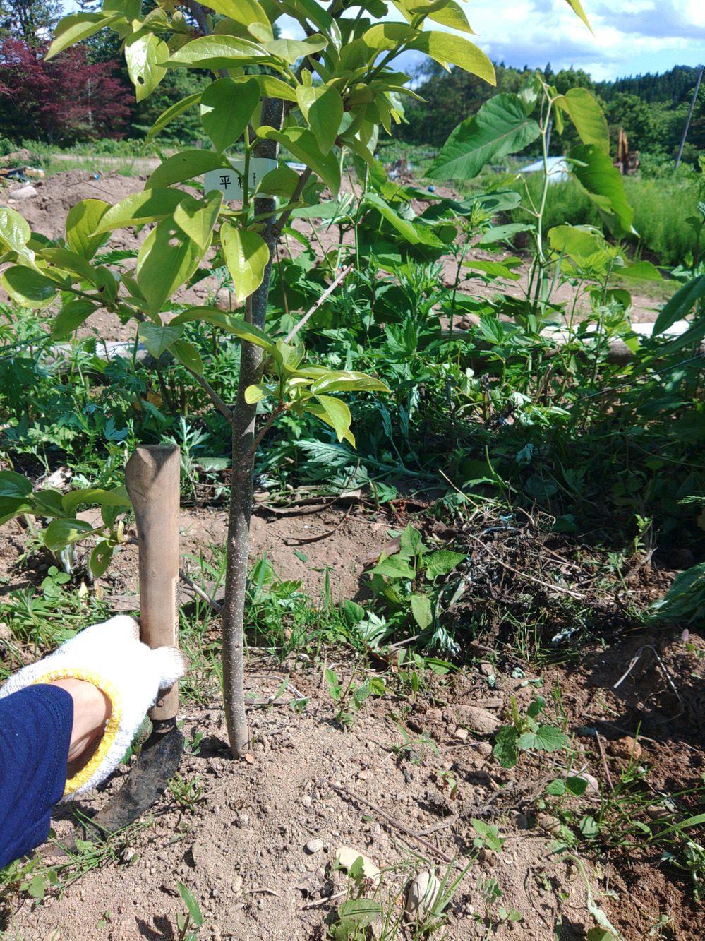 話は変わりますが 、 4月の後半に 植えた柿の木が こんな感じで 葉っぱ生えてきました とっても可愛いです
