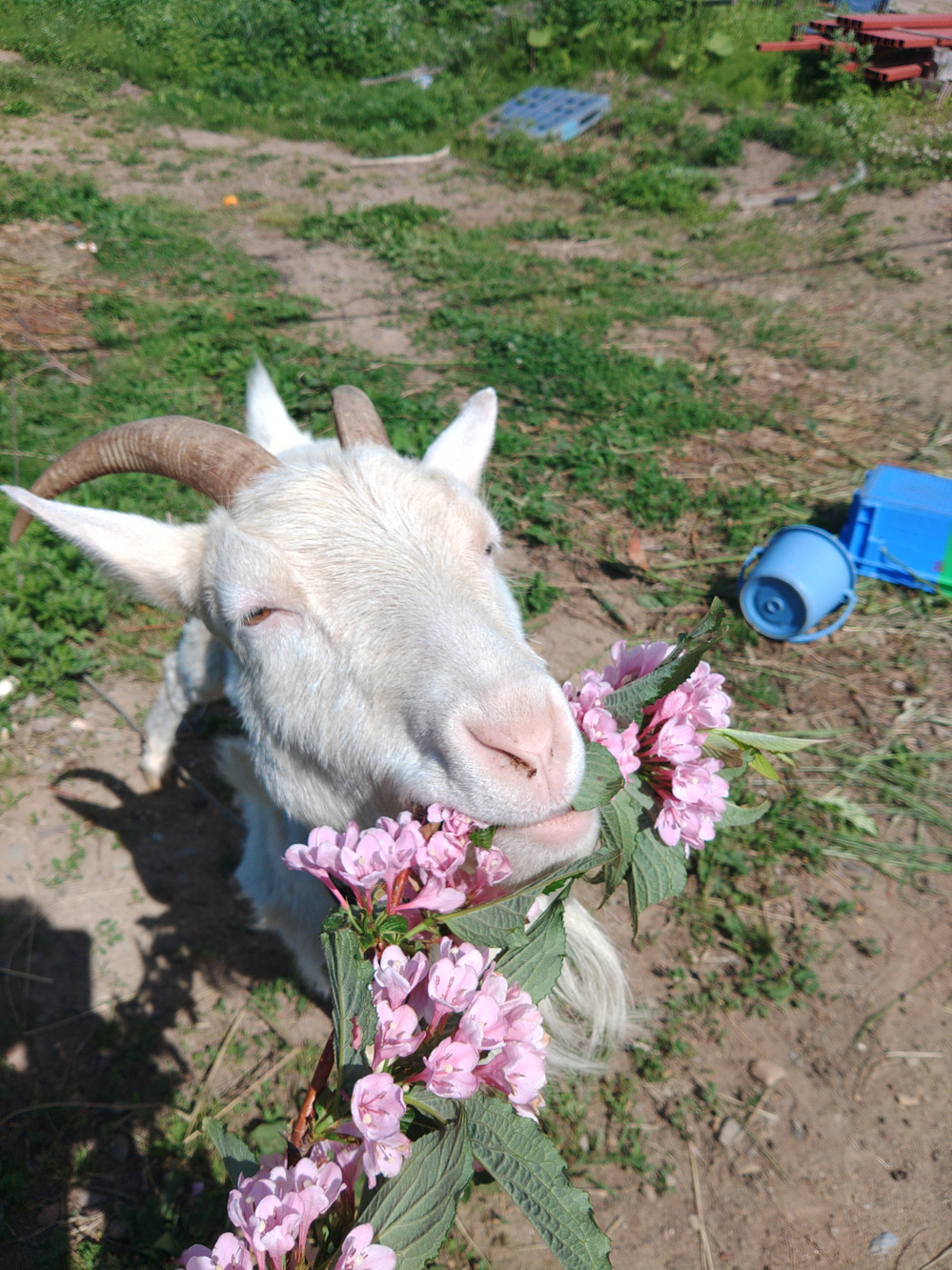 ヤギのめいちゃん 本当に花が好きなんです この花の名前は分かりませんが 今時期 たくさんなってます。