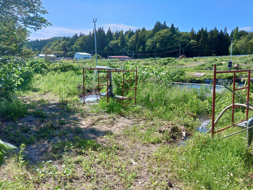 向かって右側の写真は 地下水をポンプアップしてる写真です 地下水は 酸素濃度が薄く 上から叩きつけることにより 酸素を多くでも取り入れ いけすに流しています