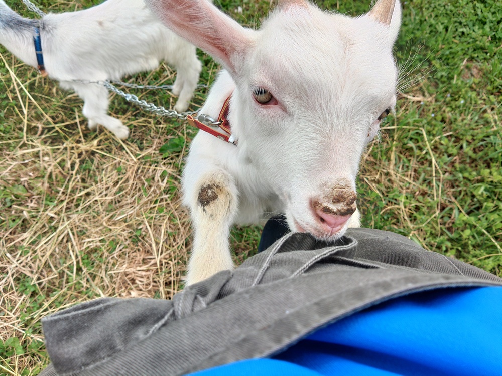 イベント会場には 2頭の子ヤギがいて、とても可愛かったです、 小さくてぴょんぴょん跳ねる姿は 昔のメイを思い出します、 毛もふわふわで 触り心地もよく 人懐っこく 持って帰りたかったです😅