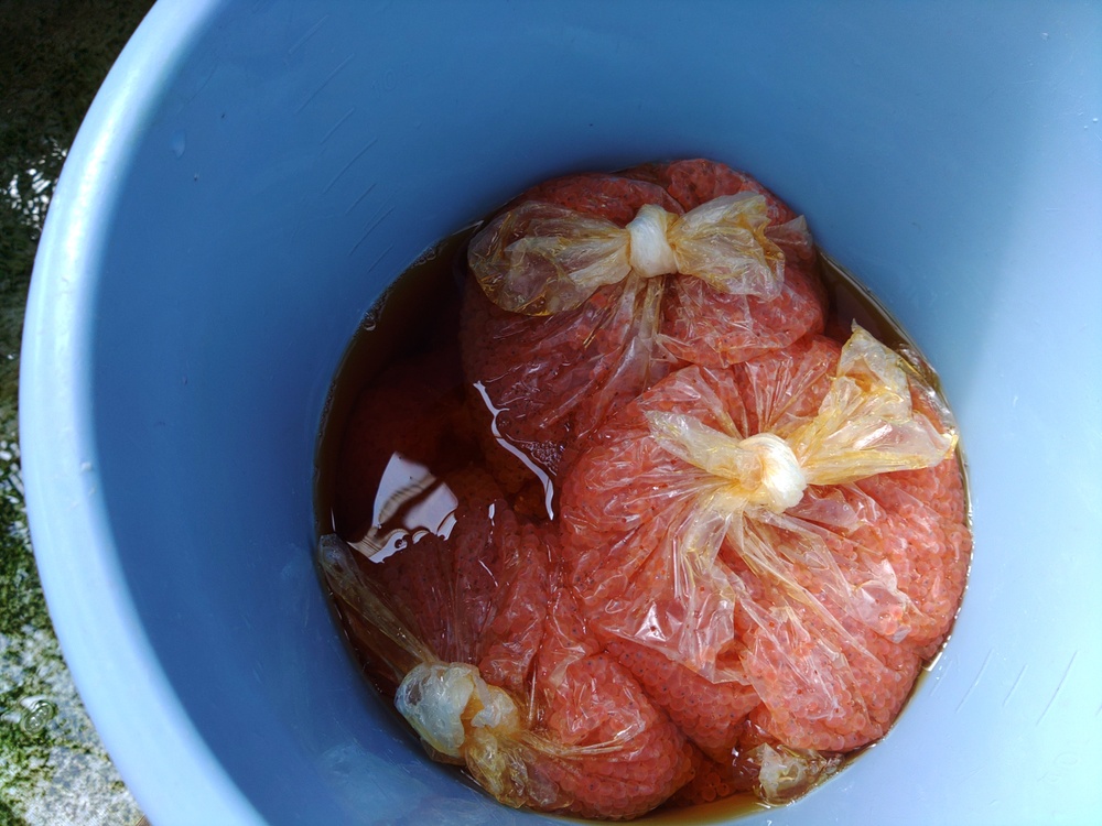 そんな中でも 夏卵の卵が入荷し 早速 消毒をして いけすに 入れました なんとか死なないで 大きくなって欲しいものです