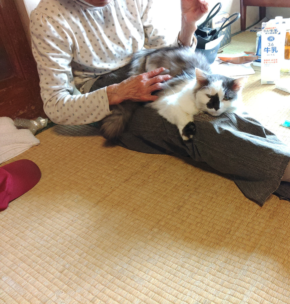 うちの猫たちは 母が大好きです いつも母の取り合いです 通常は マイケルが膝の上を占領してますが 今回は珍しく もも、寝心地 悪そうに 膝の上を 占領です。