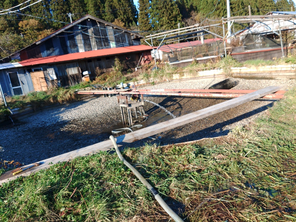 今 養殖場では 海に出すの魚の出荷が 最盛期になります、 いけすも だいぶ 空いてきました 天気もいいので うちの父親も 池 洗いに せいが出ます ポンプで水を汲んで池を洗いますが この写真のホースを見てください 、つぎはぎだらけのポンプのホース 笑ってしまいます