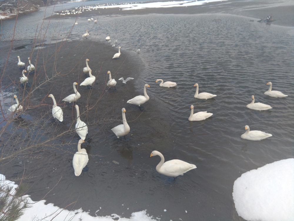 本当は 3月 もうそろそろ帰る時期ですが 今年は 本当におかしい天気で 3月に降ってからとか雪が 白鳥たちも 帰る気がないみたいです。😁
