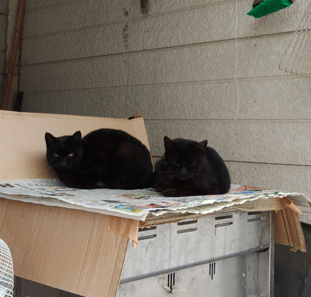 今日の写真はお客様のところに行ったら クロネコ 3匹 兄弟ですね 最初は3匹一緒に ちょこんと 座ってましたが 写真を撮ろうと近づいたら 逃げちゃいました