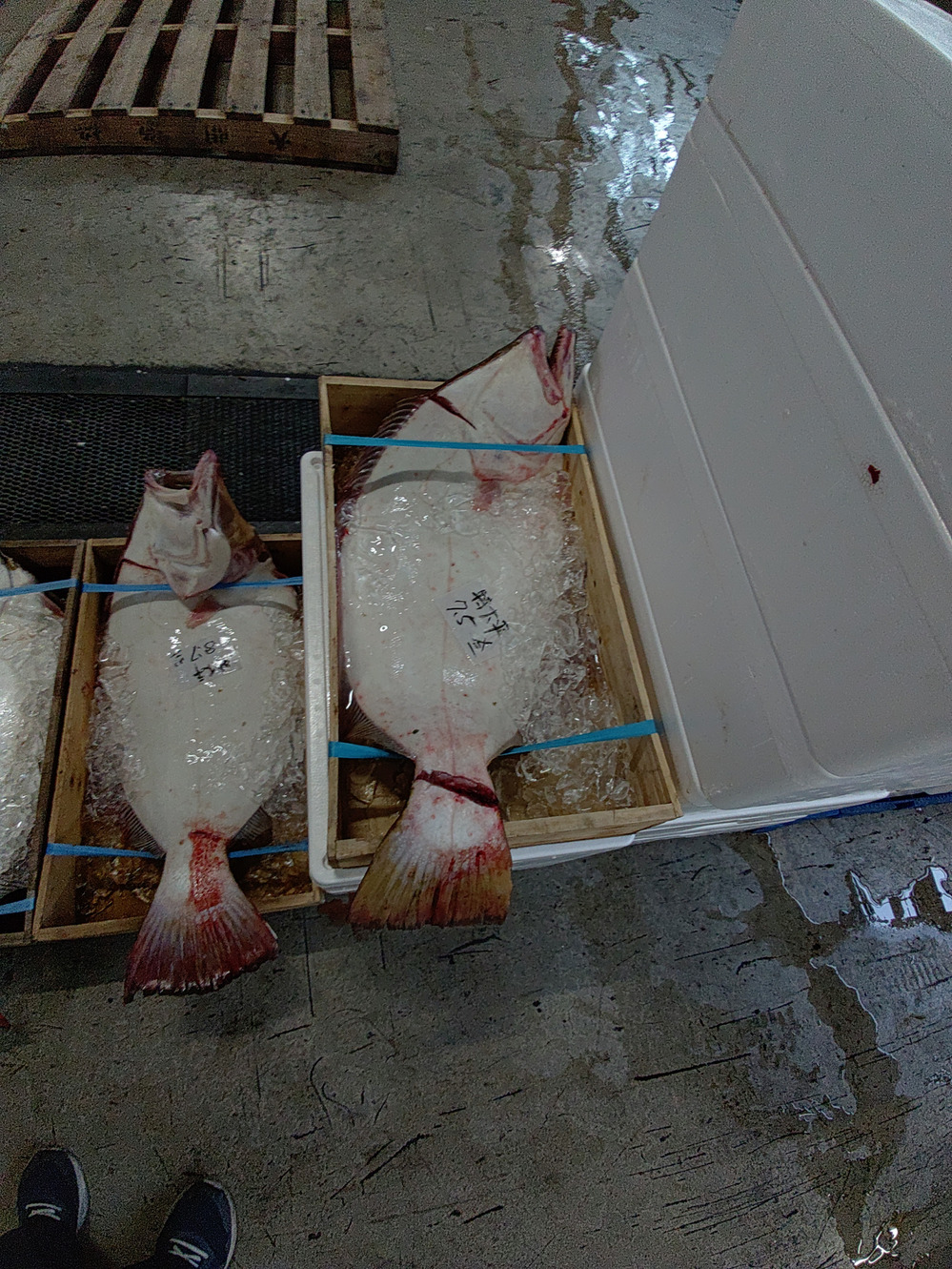 そんな中 市場には天然ヒラメが山のように入荷してました、自分は白身の魚も好きなのでヒラメの刺身食べたい。こんなに大きいとおろすのも大変ですね そっちの方を考えてしまいます