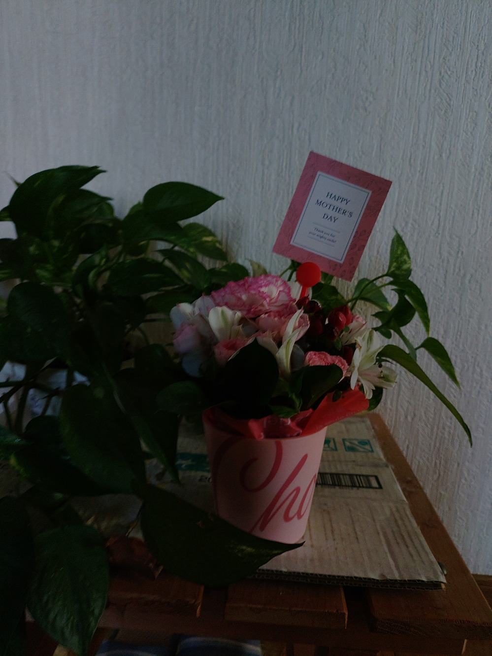 11日 日曜日 母の日でした うちの息子は何 も よこしませんが 嫁さんから可愛いお花をもらいました ありがたいです。