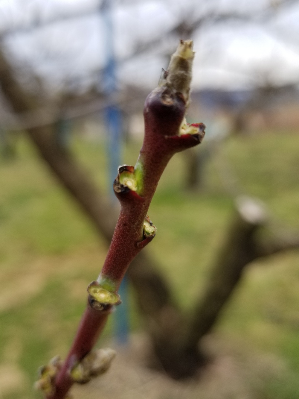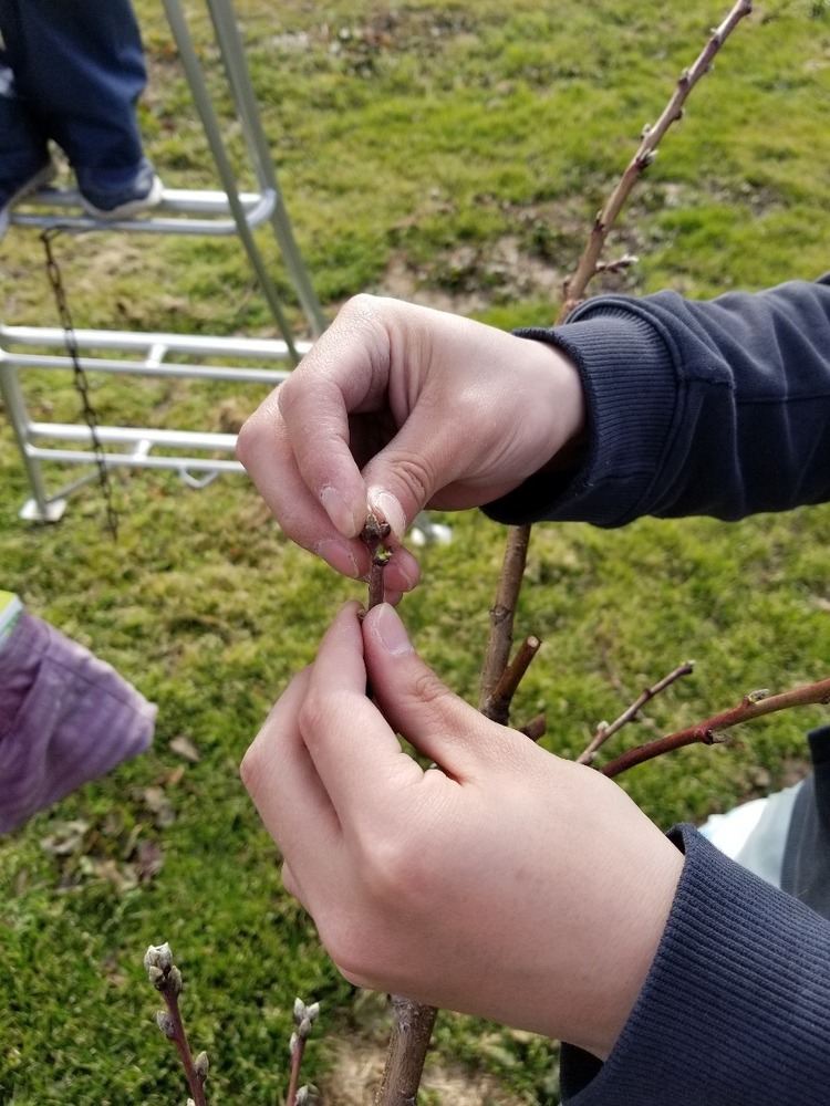 3月に剪定(せんてい)を行った枝には春先蕾が出てきます。このままの状態で育つと蕾たちは養分の取り合いになり、実も大きく育ちません。そのため、「摘蕾(てきらい)」という作業で蕾を落としていきます。大玉で高品質の実になるよう、蕾に十分な栄養を行き渡らせるための作業なのです(`・∀・´)従業員全員で取り組みます。
