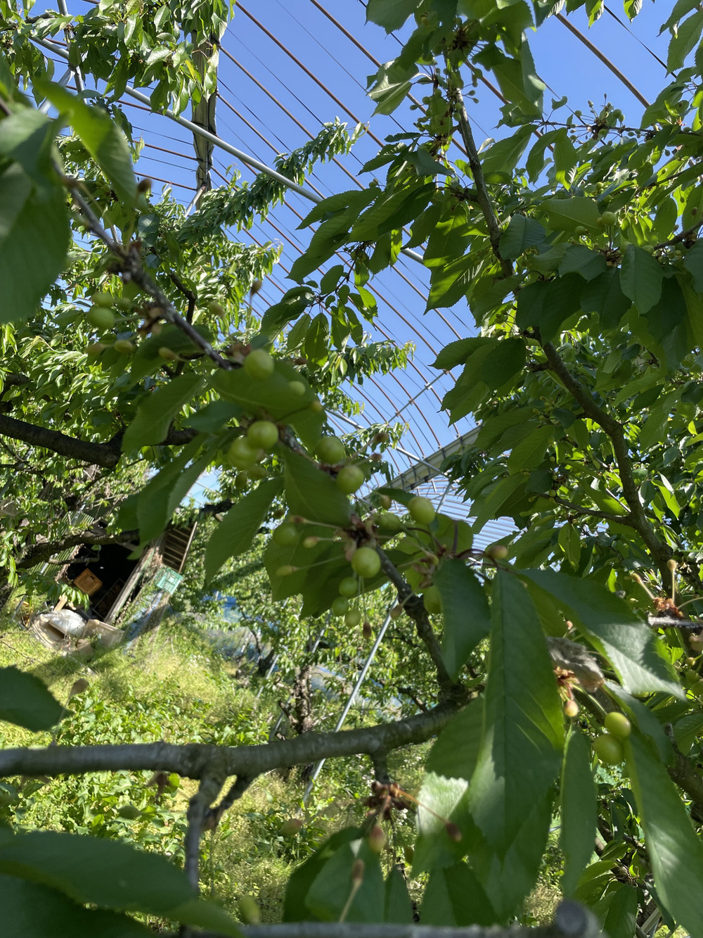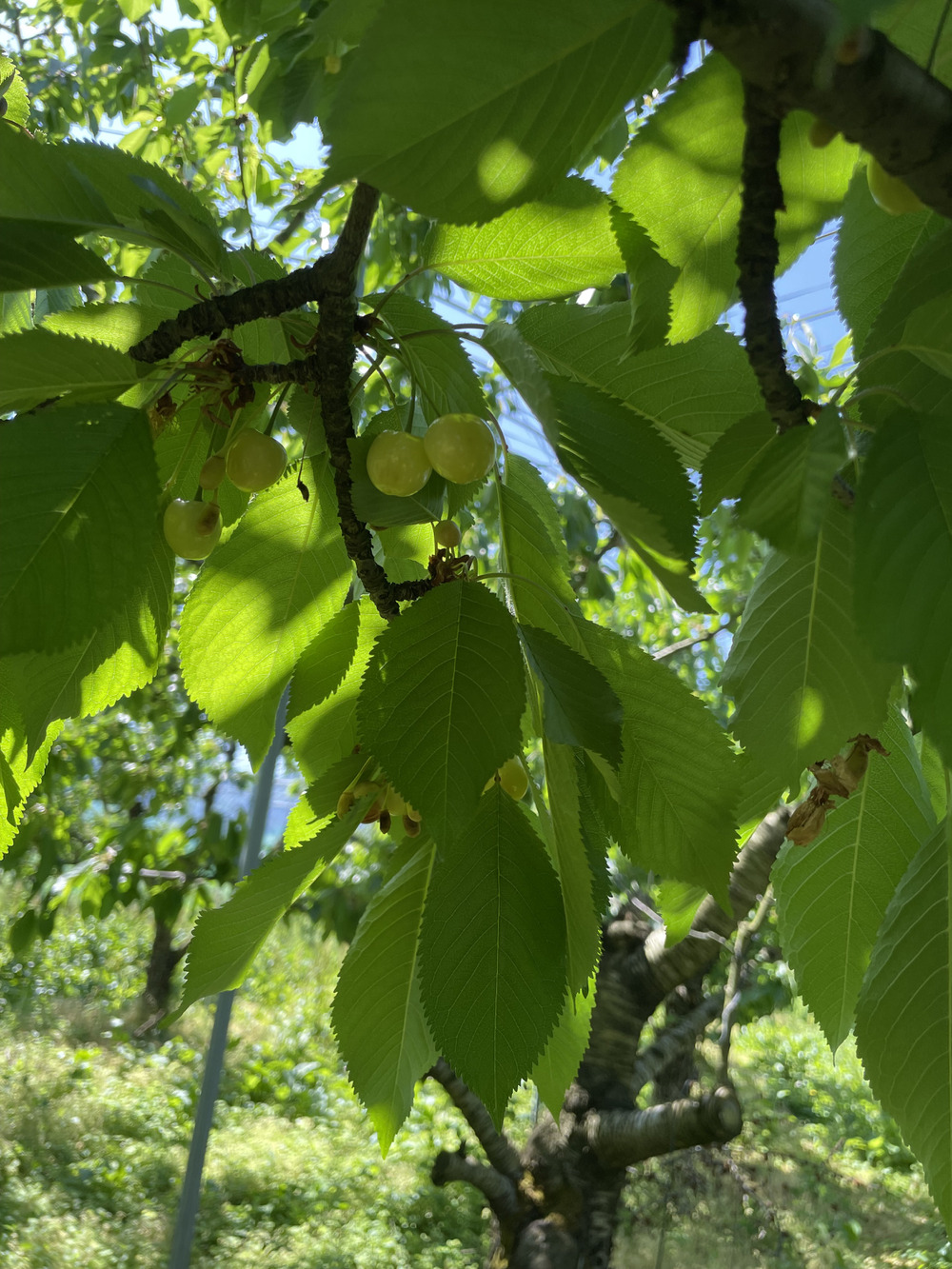 ラフランスを大きくする為に、摘果作業(5つの実を一つにする作業)をしたり、さくらんぼの収穫に向けて、スタッフ全員で分担しながら頑張っております😊