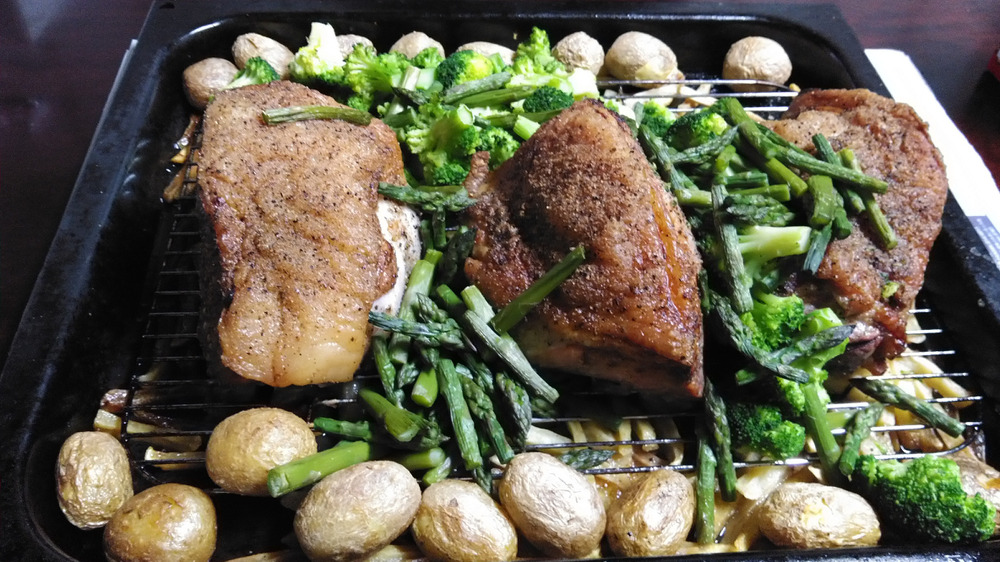 ブロック肉をカットしニンニク醤油焼に15分ほど漬けてから焼きました。