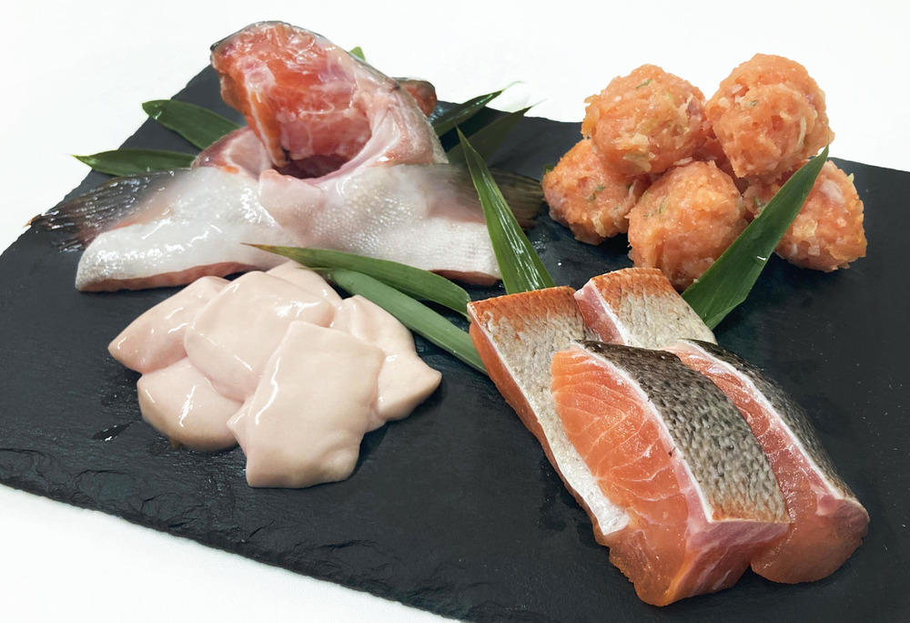 内容は、甲州ワイン鱒の切り身、つみれ、カマとニジマスの白子の