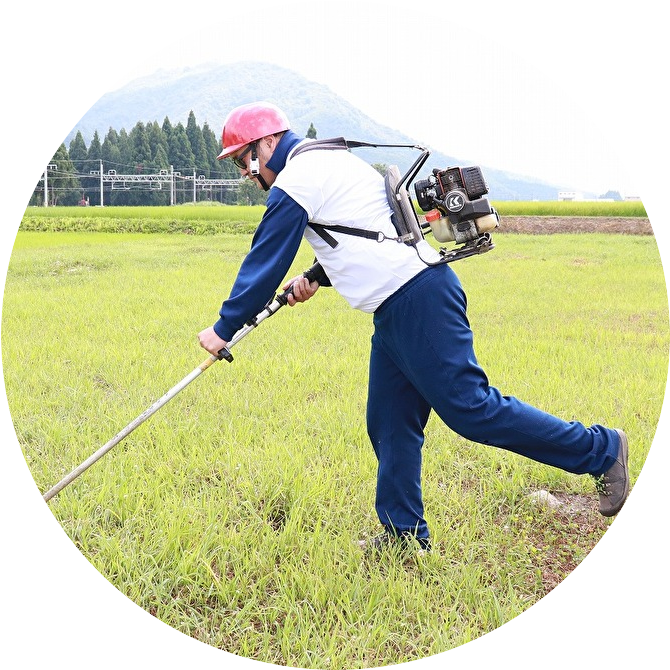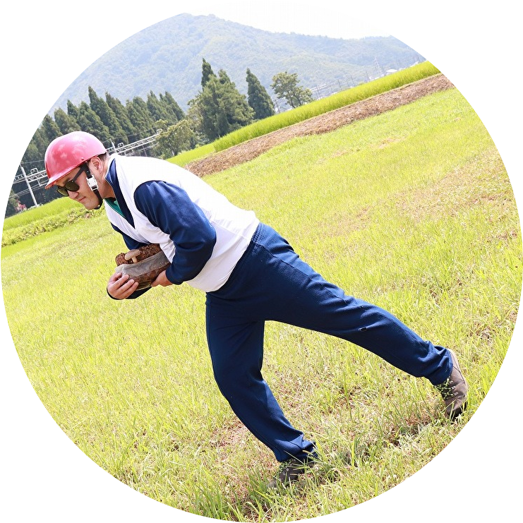菌床や草刈り機、ホースなどを多用しながらの撮影(笑)