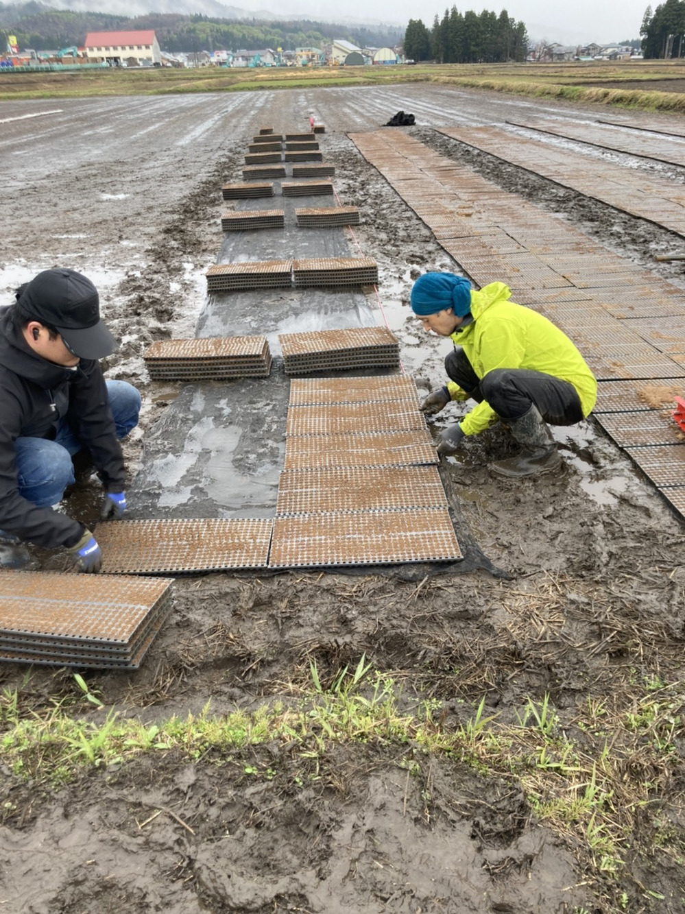 今度は成長させるために田んぼへ並べていきます!