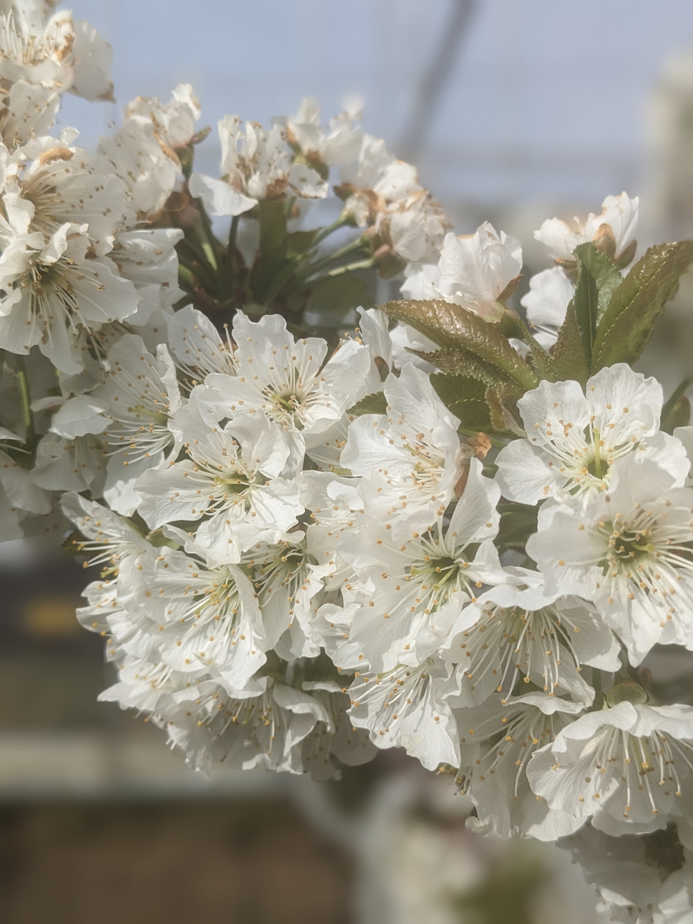 サクランボの花初めて見ました。いっぱい集まっててこれがサクランボになると想像したら・・・。摘果するのでしょうが、楽しみですね。🍒