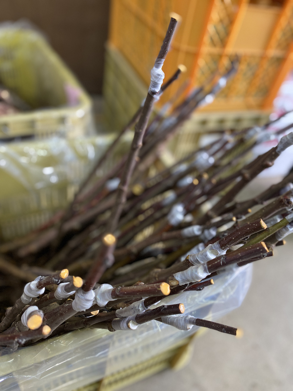根っことなる台木と品種の穂木を合わせてりんごの苗木を作っていきます♪
