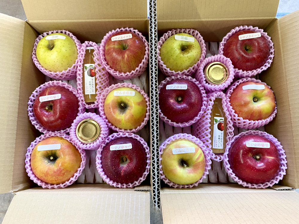 旬のリンゴを6種+ジャム+ジュースを詰めこんでいます😋