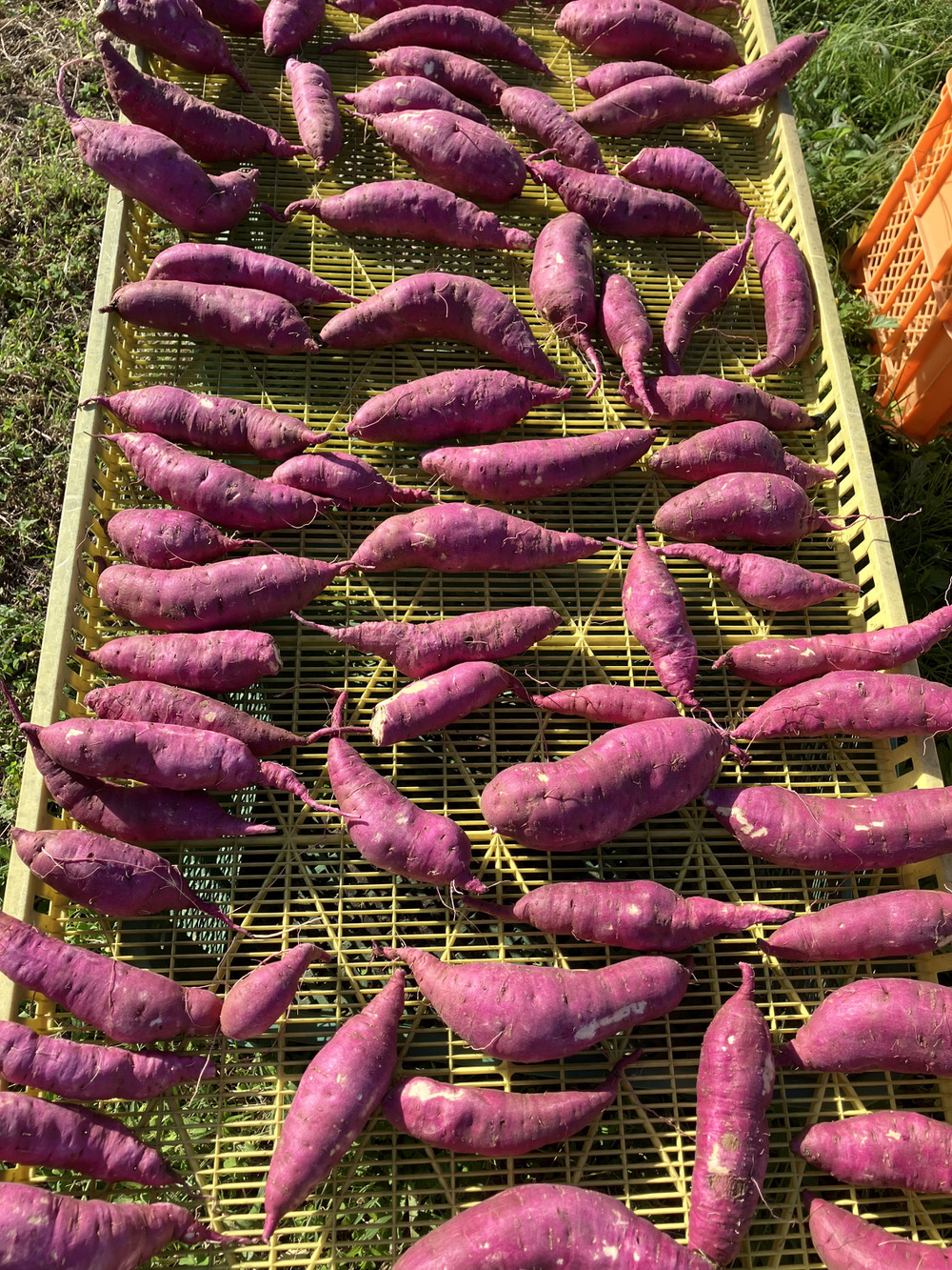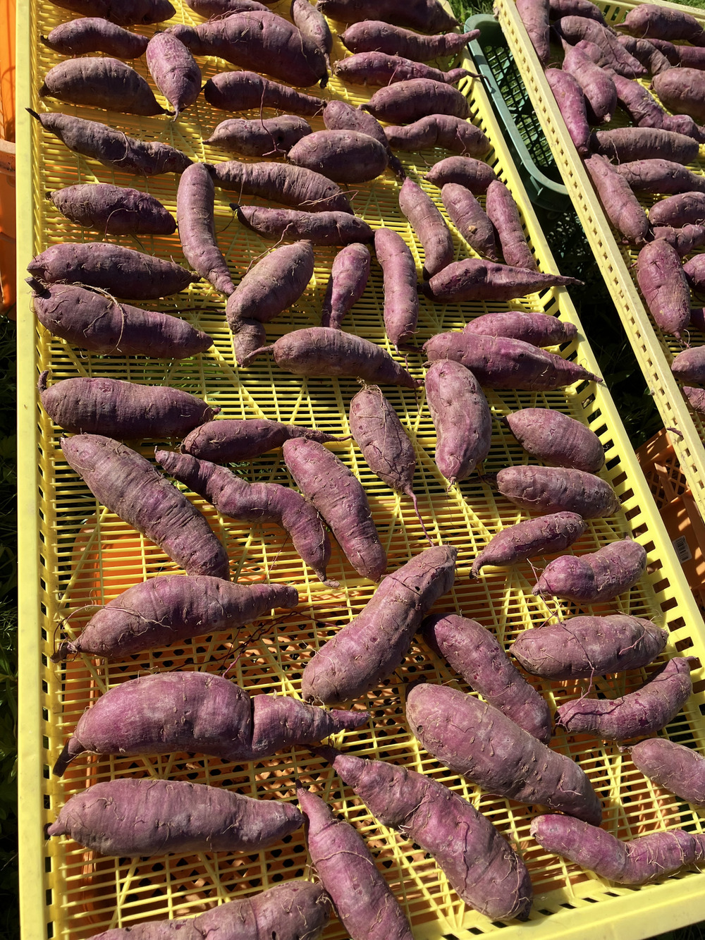 紅はるかと紫芋が採れてます。(表面が鮮やかな色味のお芋がべにはるかです)