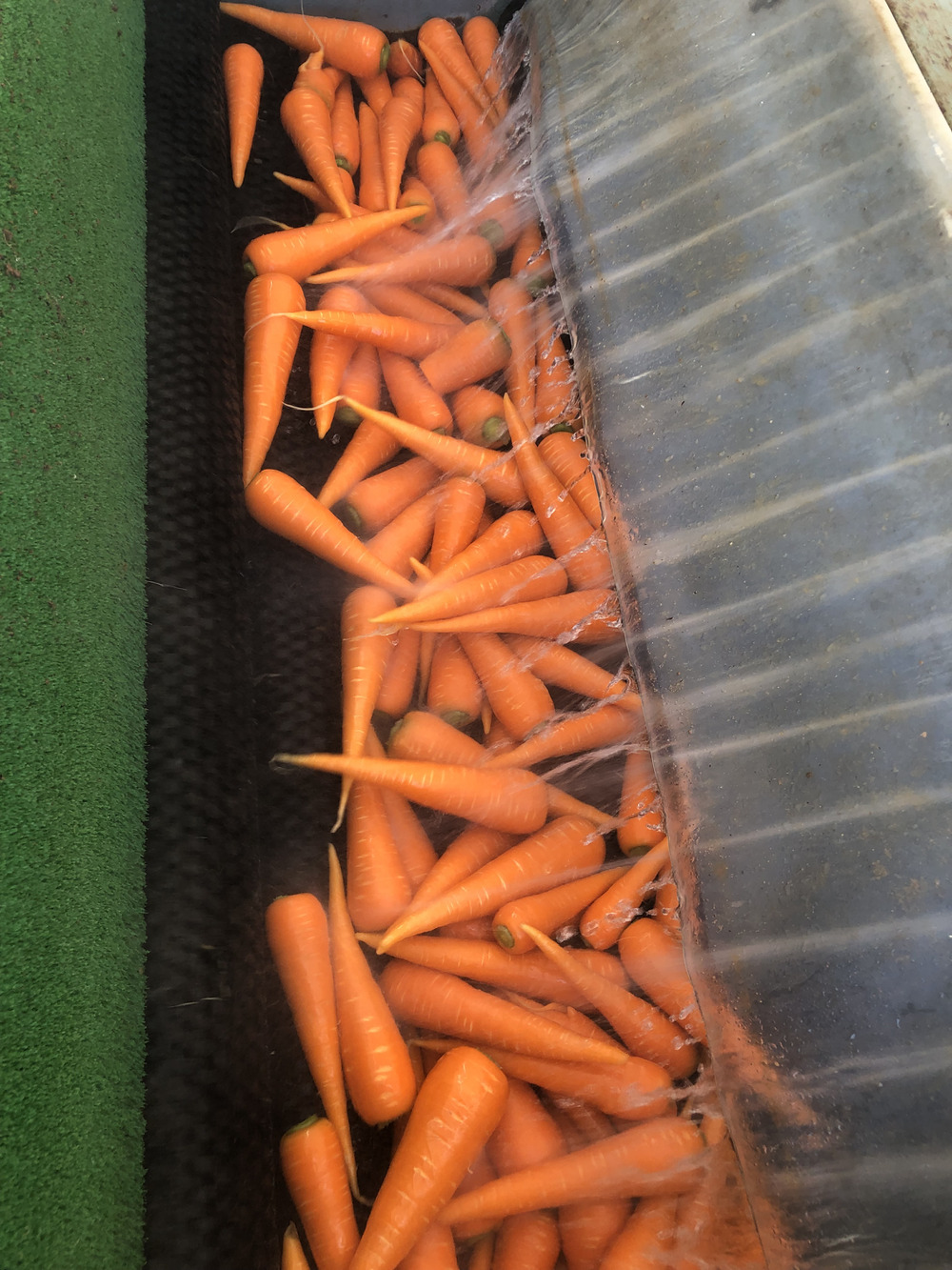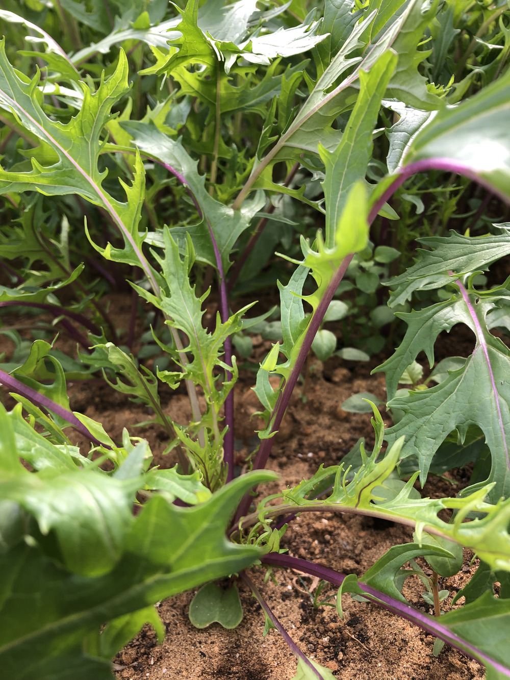 まずは得意な葉物「赤茎水菜」。そして「スティックブロッコリー」。ニンジンも収穫をはじめました。