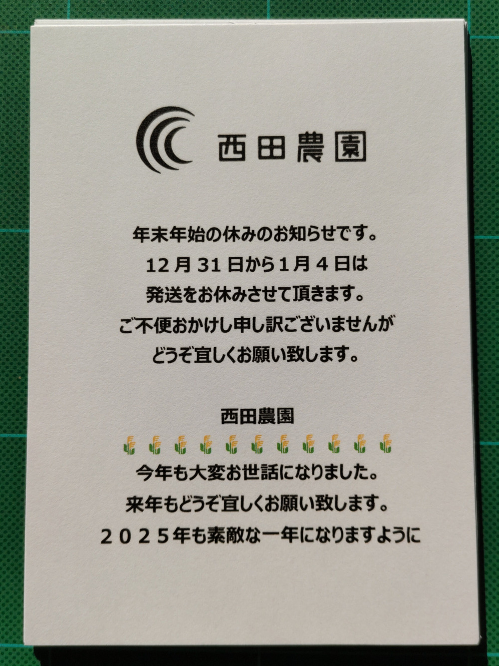 今回は💦【年末年始お休み】を頂きたく、ご連絡致しました。ご不便を、おかけ致しますが どうぞ宜しくお願いいたします。