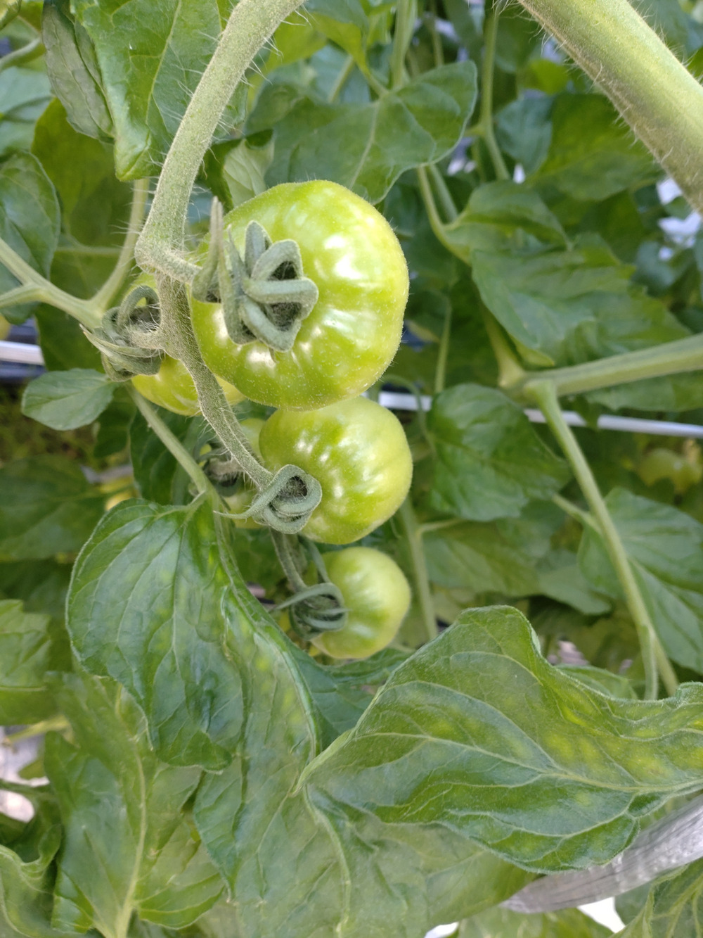 それでもトマトのハウスの中では工場扇(羽根が45センチの大型扇風機)が24時間フル稼働でブンブン回っております!