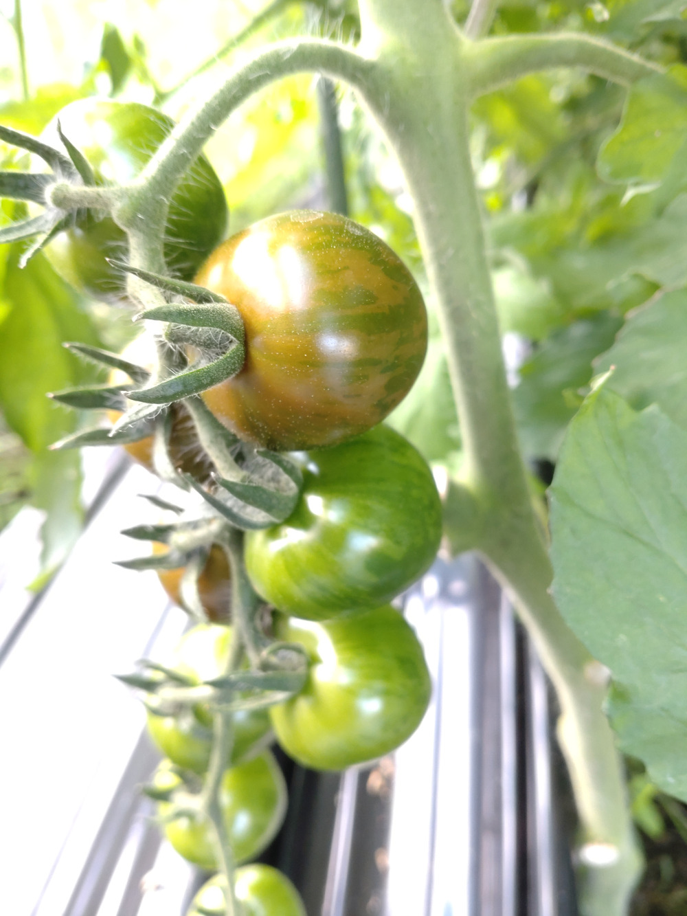 完熟まで色付くと、もっと茶色の部分の色が濃くなります。