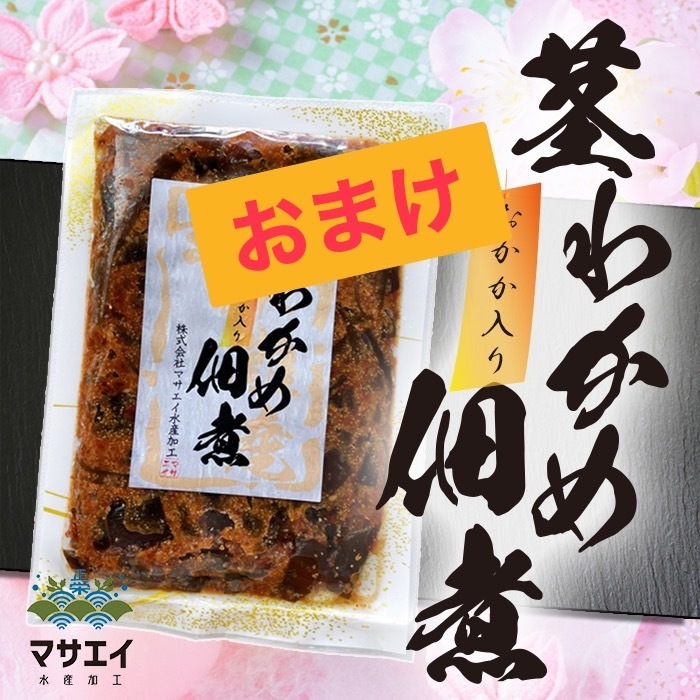 新商品の茎わかめ佃煮(明太おかか入り)500円相当1パックをおまけ!!!