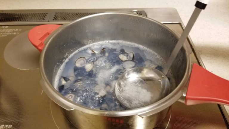 ②沸騰したお湯にしじみを投入!