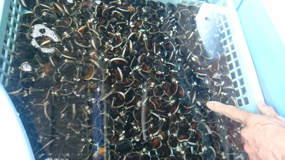 砂抜きをし始めて数時間でこんなにも汚れがでてきています。この汚れが少しでも残った状態でお客様に届けてしまうと、臭みが出てしまいます。そのため1日に何回も水槽を掃除しては水の取り替えを繰り返します😋水槽にずっとしじみを入れておくと弱ってしまうのではないかとご心配される方も多いと思いますが、大丈夫なんです😊