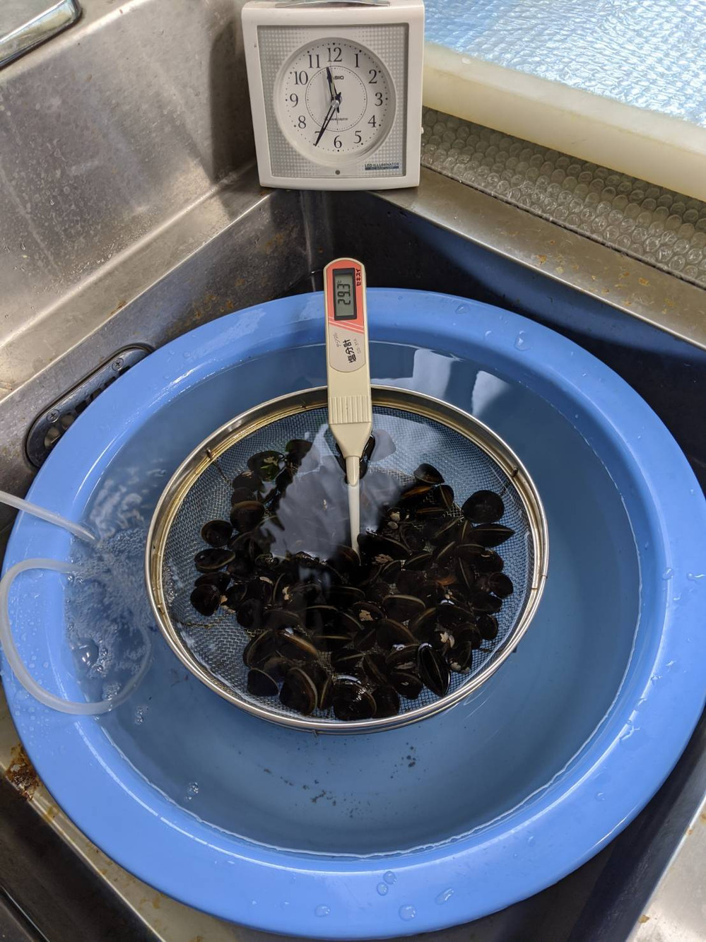 しじみの販売方法として、しじみを冷蔵庫で保管する方法がございますが、冷蔵庫に2日以上入れたしじみは白子と卵は産卵できません。涸沼川水産でしじみを水槽で管理している理由は、お客様の元へ、産卵できるような新鮮なしじみをお届けするためです。