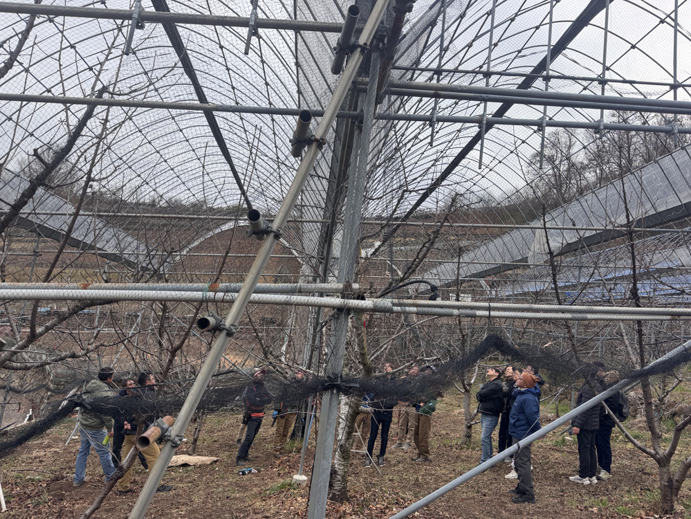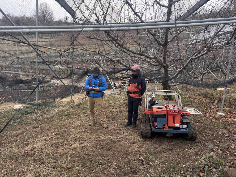 園主の大沢さんと山梨の若手オールスターズによる剪定