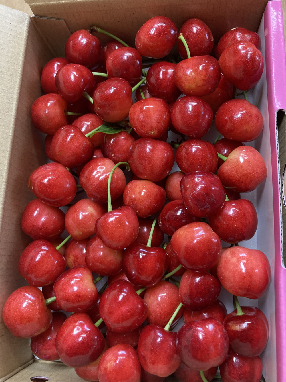 まわりのさくらんぼ農家さんたちは何日も前から収穫をしていましたが、当園は直売しかしていないので、熟期を見て本日からです。
