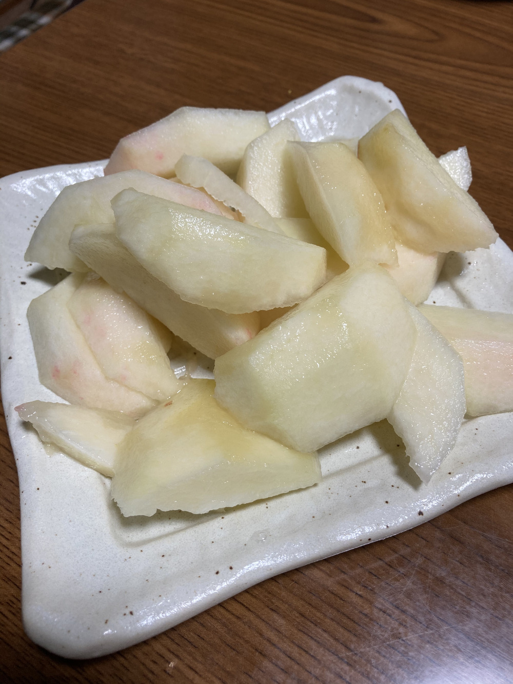 初物、我先にいただきました。味見用の葉すれ果です。味には全く変わりありません。