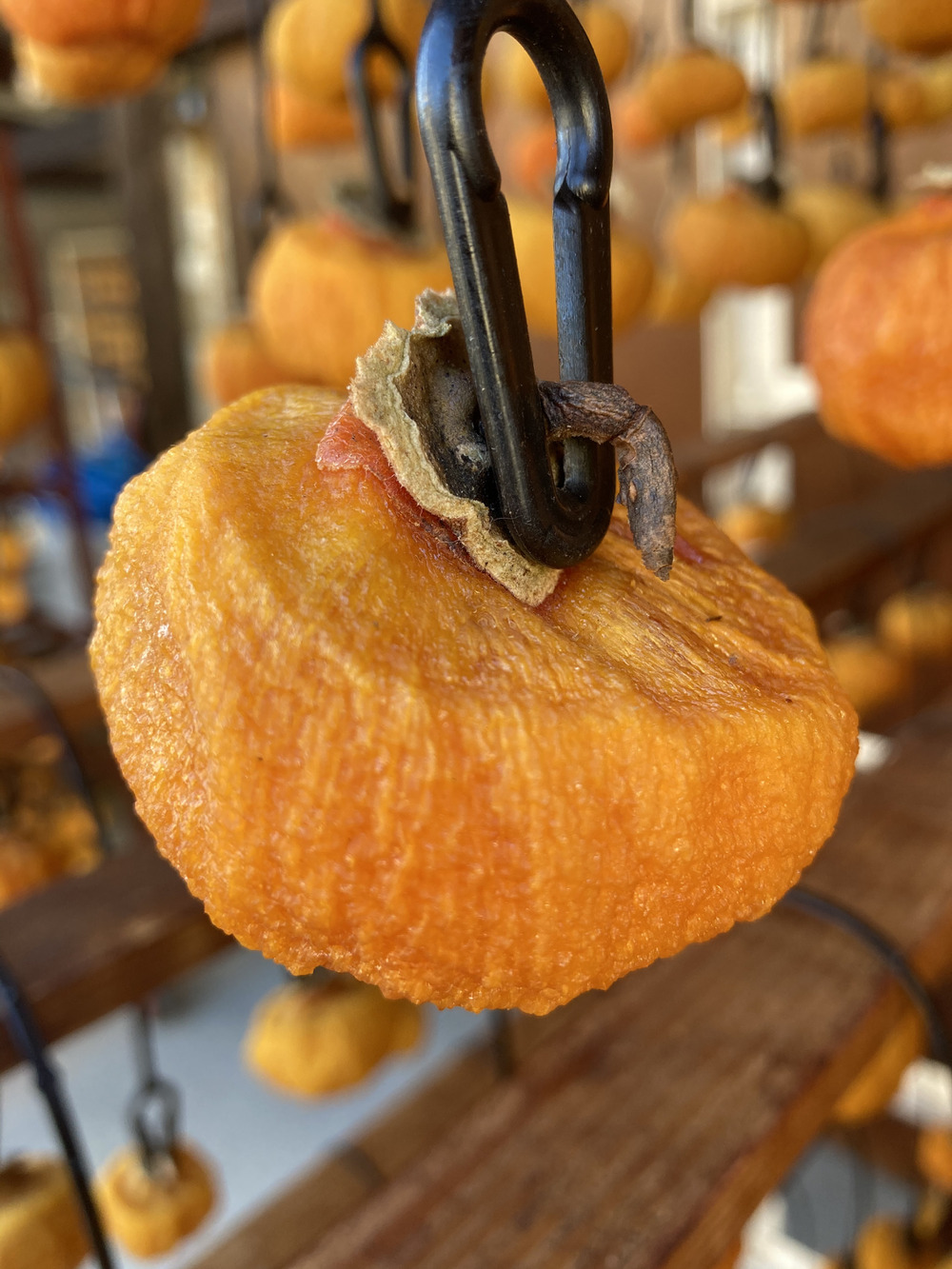 柿しわしわになってきましたね!ころ柿って何のことか分からなくググりました💦ころ柿=干し柿!そして柿の品質もたくさんあるのですね😮一つ一つ吊るして…柿に限りませんが生産作業に頭が下がります。違法ではない白い粉😂野田様の文にはクスッとする表現がちらちらあるのでウケます。