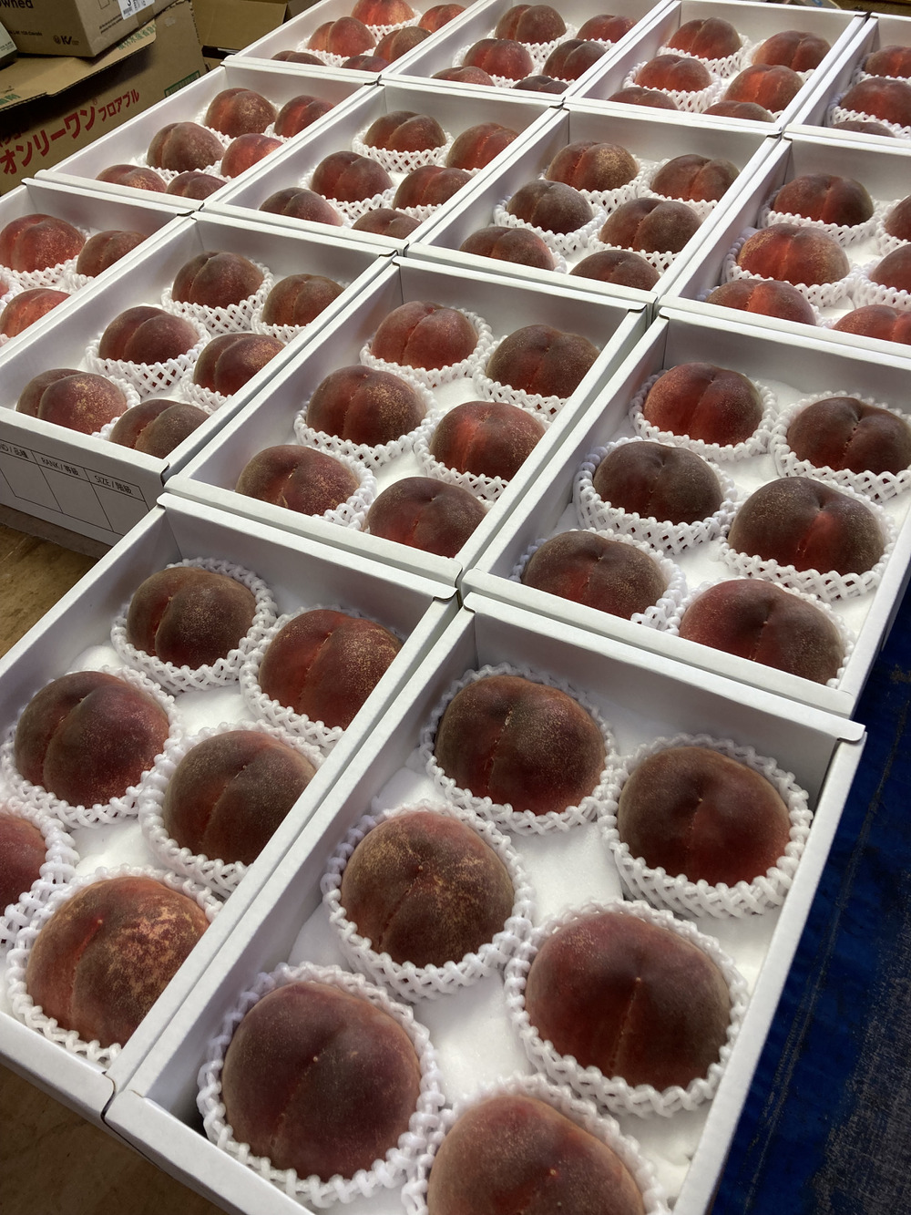 当園の桃の始まりの品種『日川白鳳』がほぼ終わりとなります。予約の方は早々に予定数量に達し、いつも急な追加販売に関わらず、ご注文をいただきまして本当にありがとうございます。