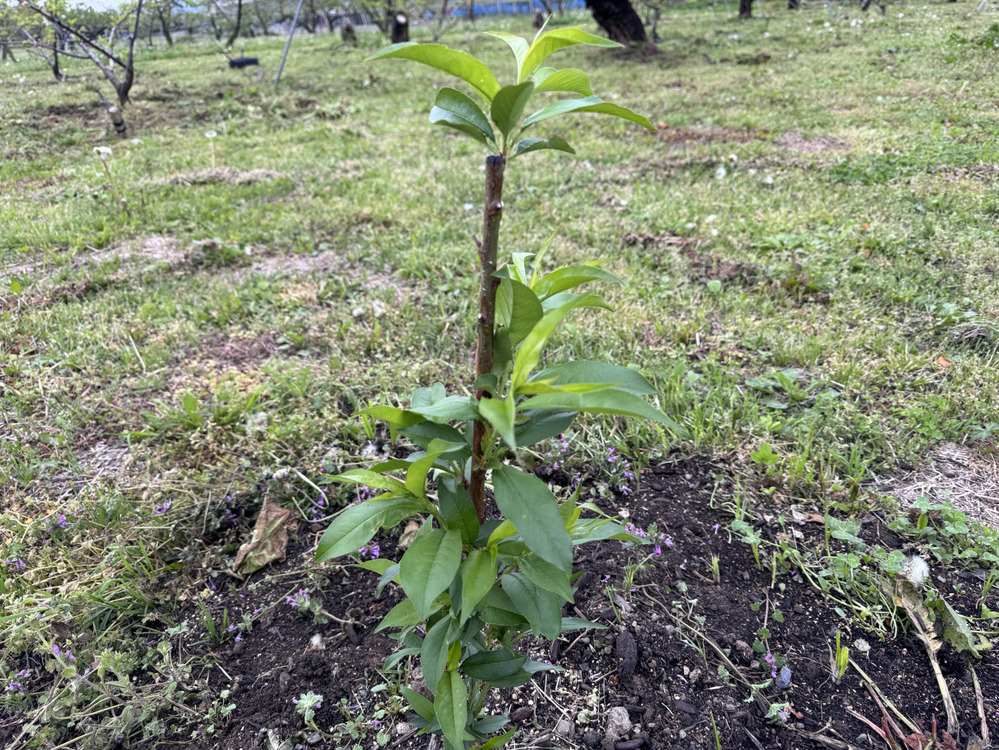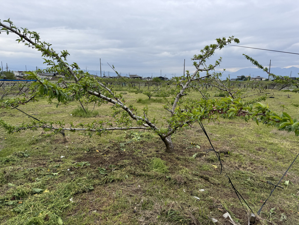 刈払機による園地の境目と樹周り、畑かんのスプリンクラー周りの草刈りが3日目を迎えています