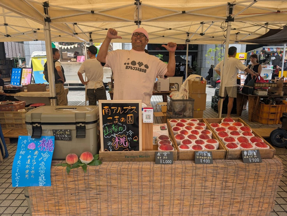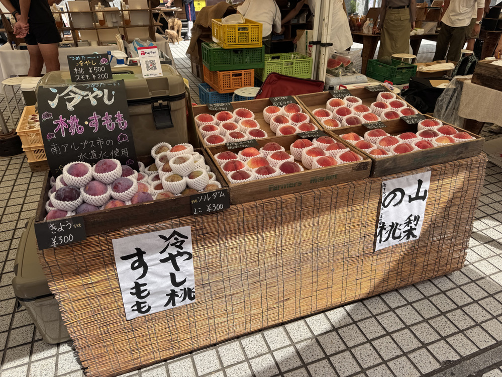 恒例の冷やした桃とすももをぜひ会場で食べてくださいね
